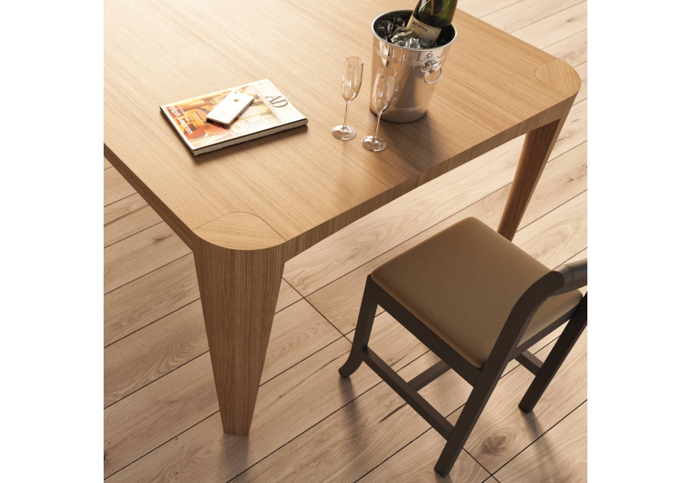 Terra diseñada por Estel R&D para Estel es una mesa con estructura que incluye tablero y patas en madera maciza de roble. Disponible en versión rectangular y cuadrada.