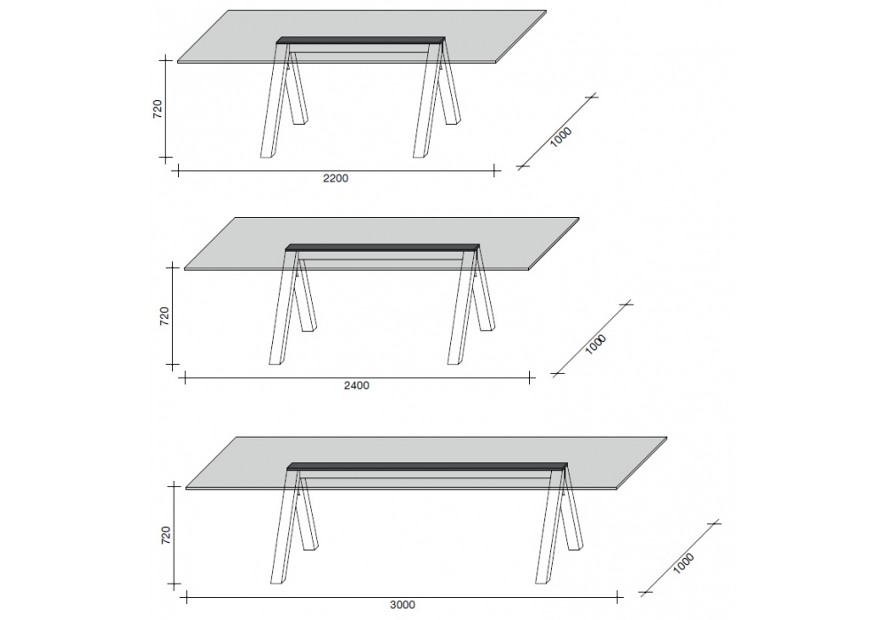 | Dimensiones | 220 x 100 x H 72 cm; 240 x 100 x H 72 cm; 300 x 100 x H 72 cm |
