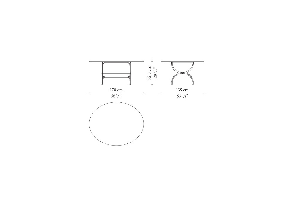 Nonaro diseñada por Luigi Caccia Dominioni para Azucena es una mesa ovalada con tapa y estructura de pizarra con acabado gris metalizado.