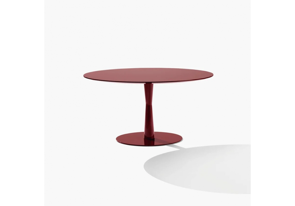 Flute diseñada por Roberto Barbieri para Poliform es una mesa redonda con tablero disponible en panel de fibra lacado mate/brillante, anti-rayado y base en trefilado aluminio, lacado mate/brillante, anti-rayado o barnizado.