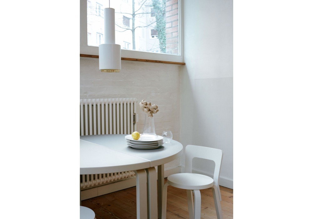 Aalto diseñada por Alvar Aalto para Artek es una mesa semicircular realizada con tres patas y borde superior en abedul macizo. Disponible en diferentes acabados.