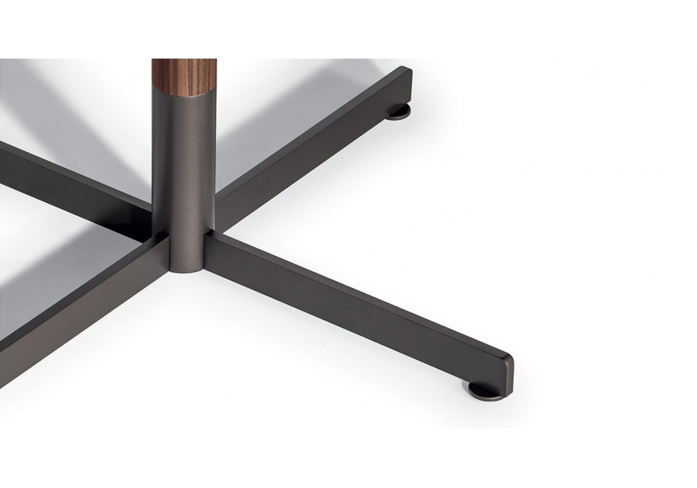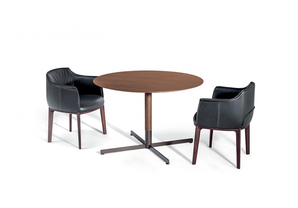 Bob Bistrot diseñada por Jean-Marie Massaud para Poltrona Frau es una mesa con base realizada en acero bruñido con patas regulables en metal a juego; parte superior de la pata en acero con cuello acabado en Nogal Canaletto cuando el tablero es Nogal Canaletto, o pintado cuando el tablero es de mármol o Fenix NTM®. Encimera disponible en Nogal Canaletto, mármol dorado Calacatta o Fenix NTM®. Está disponible en forma redonda o cuadrada y en diferentes tamaños.