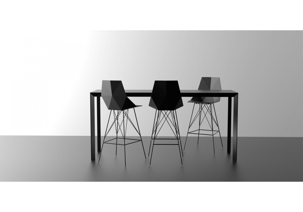 Frame diseñada por Ramón Esteve para Vondom es una mesa alta con patas de aluminio con recubrimiento en polvo. Tablero de HPL. Disponible en varios acabados y dimensiones. Apta para uso interior y exterior.
