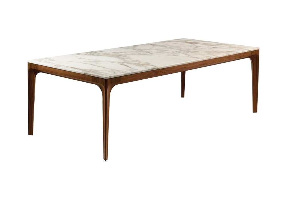 Anteo conçue par Carlo Colombo pour Giorgetti est une table rectangulaire avec structure en noyer canaletto massif ou en érable poli, en différentes finitions. Le plateau est disponible en marbre ou en verre, dans différentes nuances de couleur. Anteo est disponible en trois tailles.