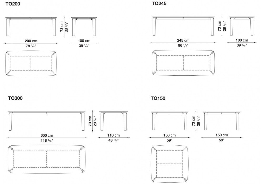 | Dimensiones | 150 x 150 x H 73 cm; 200 x 100 x H 73 cm; 245 x 100 x H 73 cm; 300 x 110 x H 73 cm. |