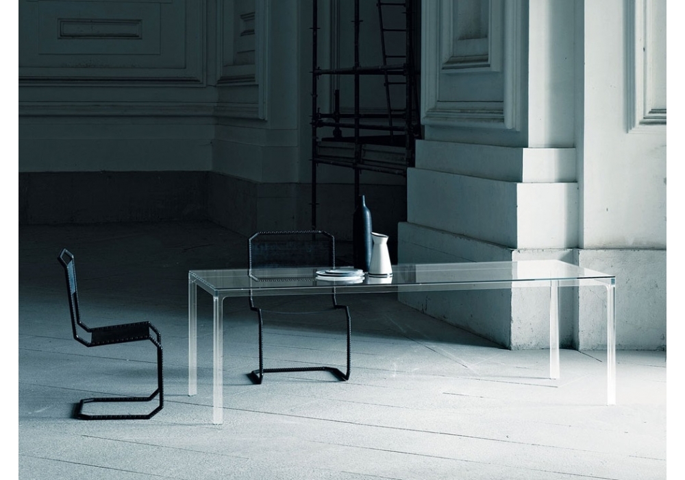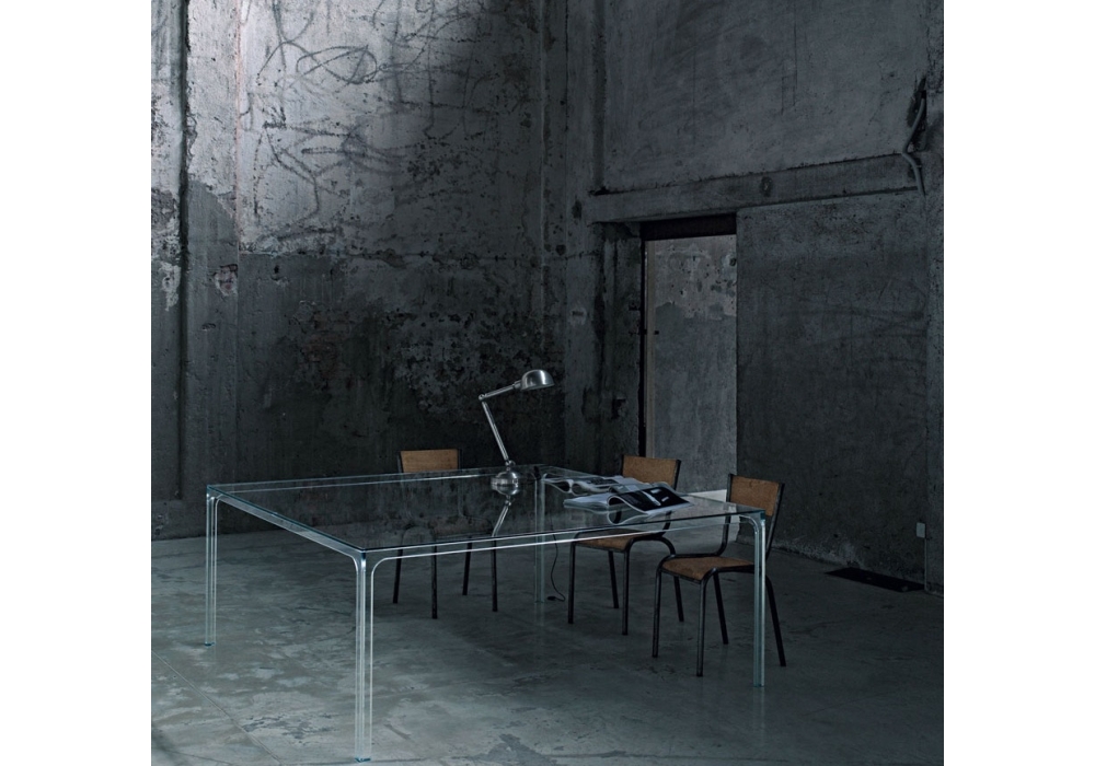 Oscar diseñada por Piero Lissoni para Glas Italia es una mesa en vidrio transparente extralight, con una base de vidrio sometida a un tratamiento especial que la hace sólida y resistente. La tapa, en vidrio templado, descansa sobre la base. Disponible en diferentes tamaños.