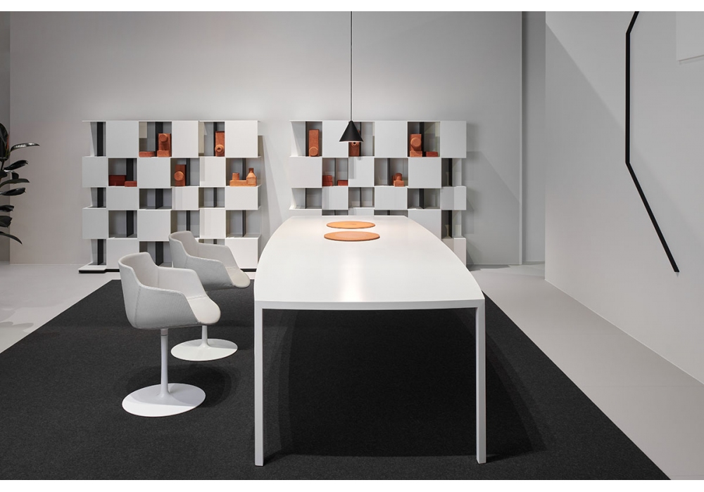 Tense Curve diseñada por Piergiorgio & Michele Cazzaniga para MDF Italia es una mesa de comedor con tablero curvo, con estructura monocromática. Disponible en diferentes tamaños y acabados.