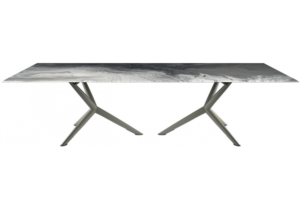 Atlantis Crystalart diseñado por Paolo Cattelan para Cattelan Italia es una mesa realizada con base de acero barnizado gofrado y patas de cromo negro. Sobre en cristal extraclaro biselado con impresión artística decorativa en dos variantes de color. Disponible en varios tamaños.
