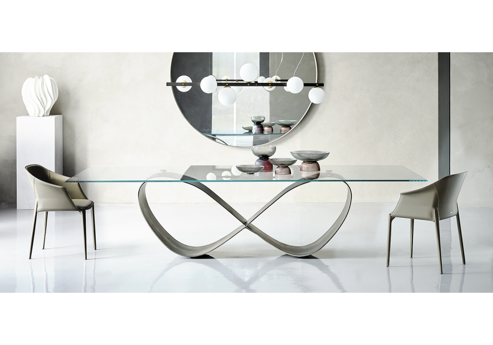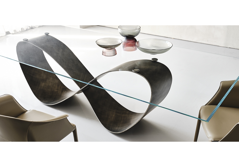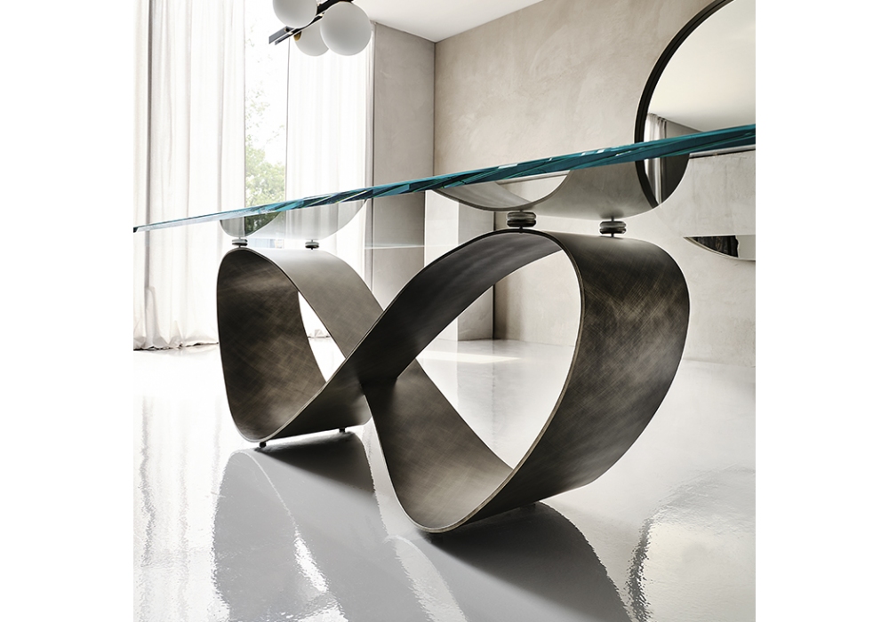 Butterfly diseñado por nucleo+|2020 para Cattelan Italia es una mesa realizada con base de acero barnizado g y sobre en cristal transparente o transparente extraclaro. Disponible en varios tamaños.