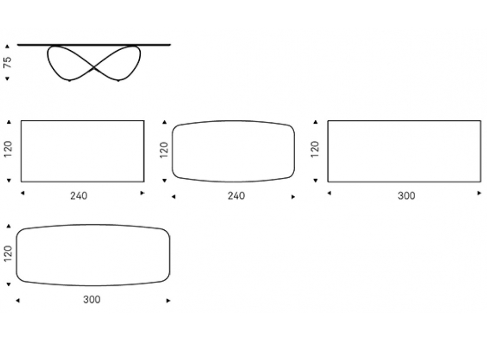 | Dimensiones | 240 x 120 x H 75 cm; 300 x 120 x H 75 cm |
