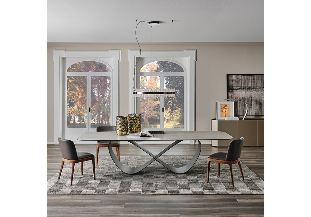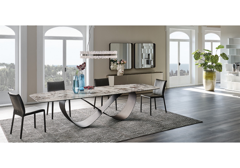 Butterfly Keramik diseñado por nucleo+|2020 para Cattelan Italia es una mesa realizada con base de acero barnizado y sobre en cerámica Marmi en variantes de color. Disponible en varios tamaños.