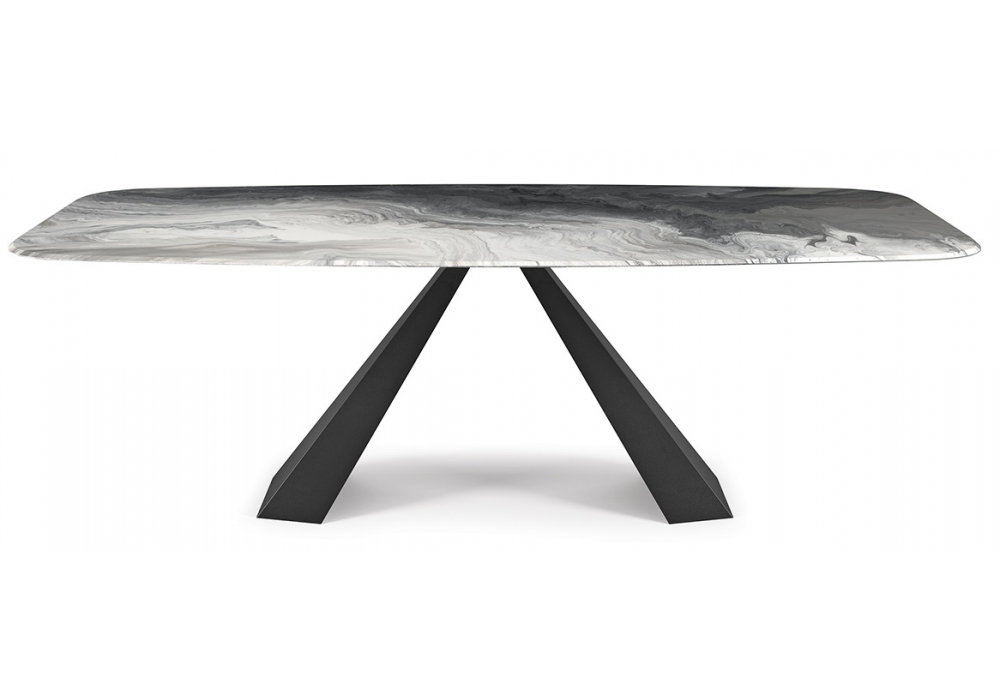 Eliot Crystalart diseñado por Giorgio Cattelan para Cattelan Italia es una mesa realizada con base de acero barnizado gofrado. Sobre en cristal extraclaro biselado con impresión artística decorativa en dos variantes de color. Disponible en varios tamaños.