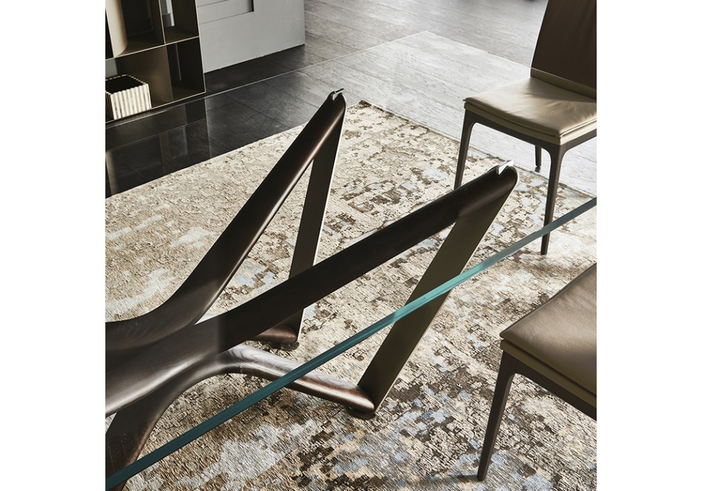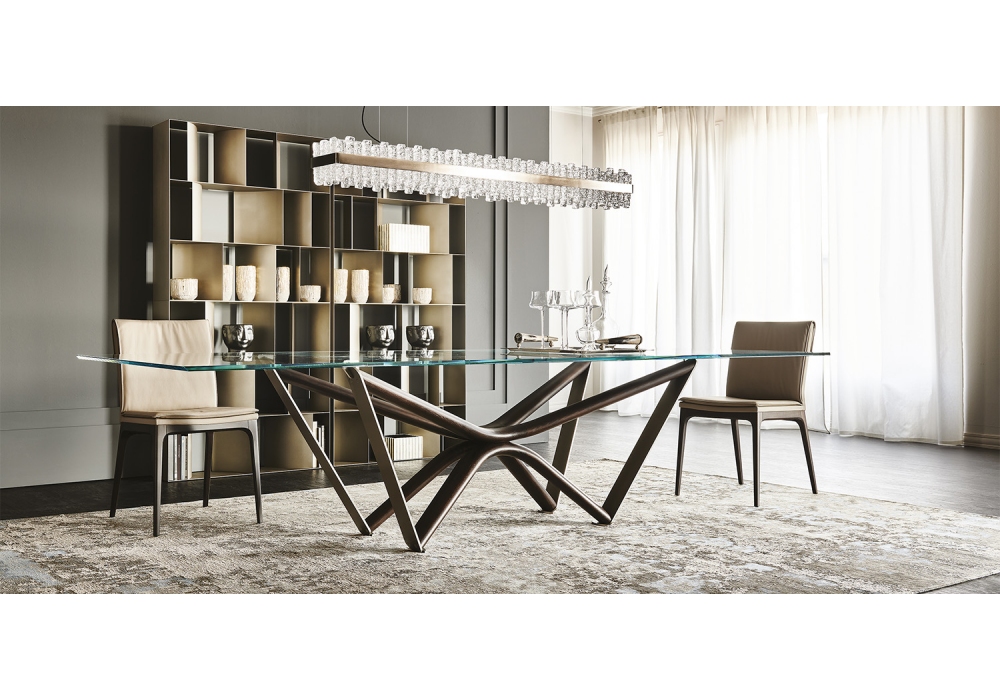 Marathon diseñada por Andrea Lucatello para Cattelan Italia es una colección de mesas con base en madera y acero lacado y tapa en vidrio transparente o extraclaro. Disponible en varios tamaños.