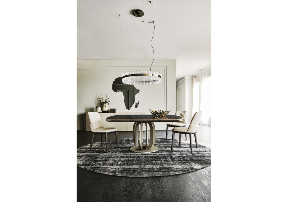 Soho Keramik Premium diseñado por Paolo Cattelan para Cattelan Italia es una mesa realizada con base de acero barnizado gofrado y sobre en cerámica Marmi en variantes de color con perfil inferior redondeado barnizado Brushed Bronze o Brushed Grey.