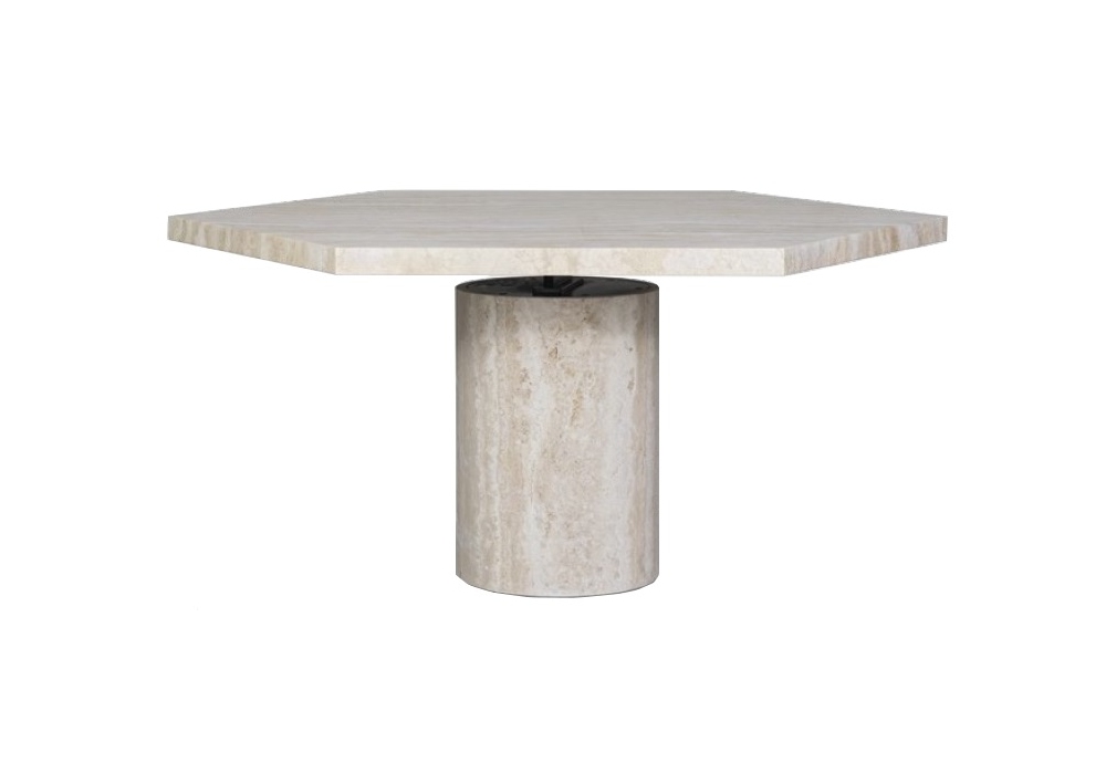 Jupiter Special Edition diseñada por StudioPepe para Baxter es una mesa realizada con superficie y base en mármol Travertino mate. Placa de conexión en metal negro mate. Disponible en diferentes dimensiones.