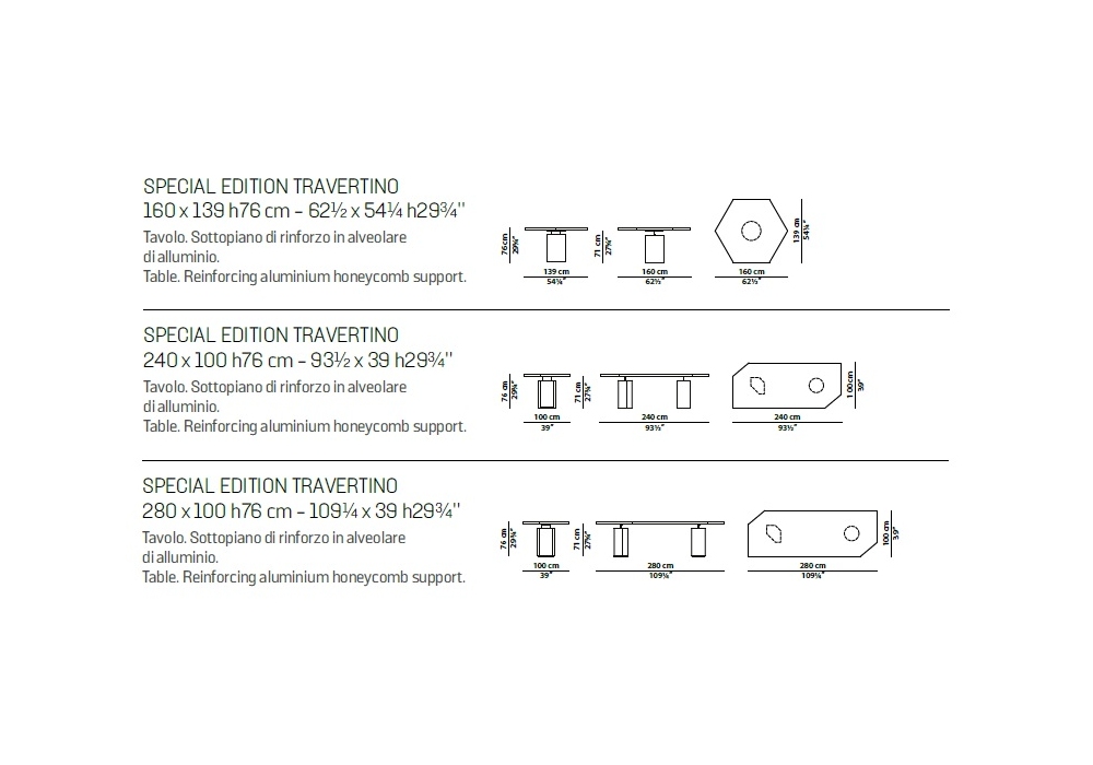| Dimensiones | 160 x 139 x H 76 cm; 240 x 100 x H 76 cm; 280 x 100 x H 76 cm. |
