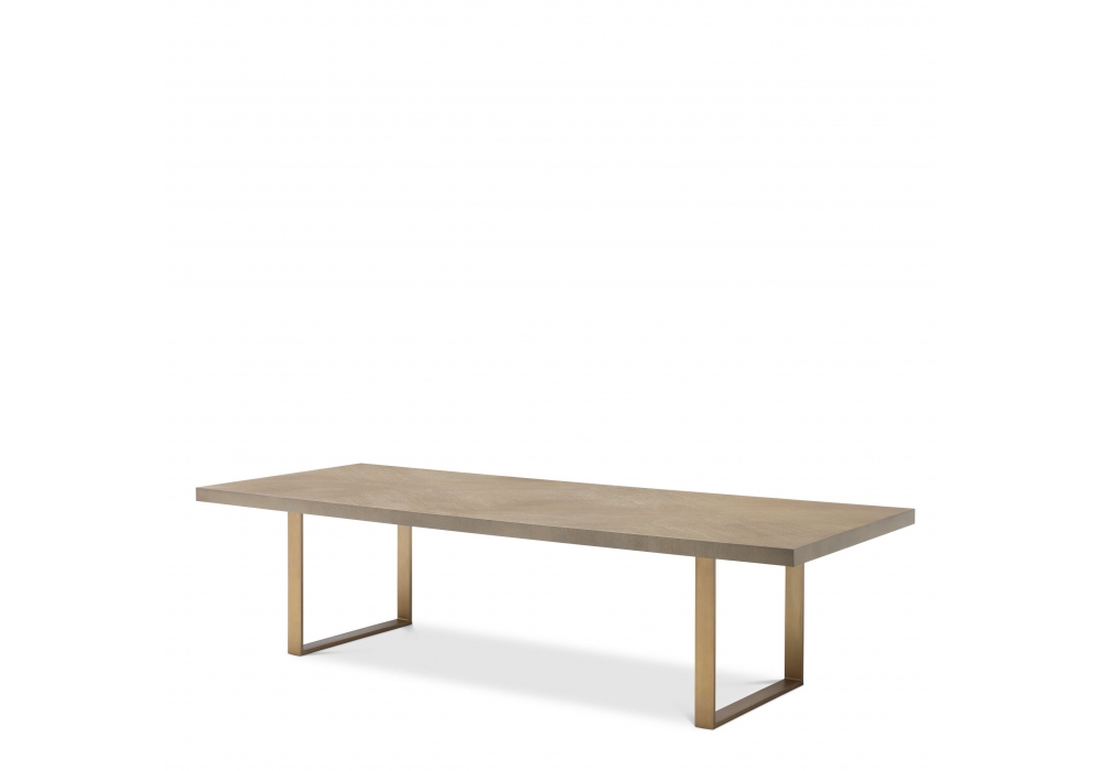 Remington diseñada por Eichholtz es una mesa compuesta por un tablero en chapa de roble lavado y una base en acabado de latón cepillado.