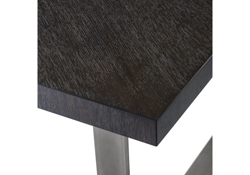 Borghese diseñada por Eichholtz es una mesa compuesta por un marco de metal con acabado de níquel negro y un tablero de chapa de roble carbón.