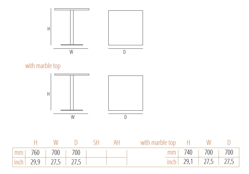 | Dimensiones | • 70 x 70 x H 76 cm; • 70 x 70 x H 114 cm |