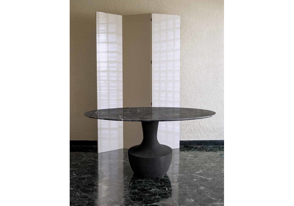 Anfora diseñada por Alexander Lorenz para Potocco es una mesa con base de resina de cuarzo en diferentes colores. La tapa tiene forma circular y está disponible en cristal o mármol en diferentes acabados y en dos medidas.