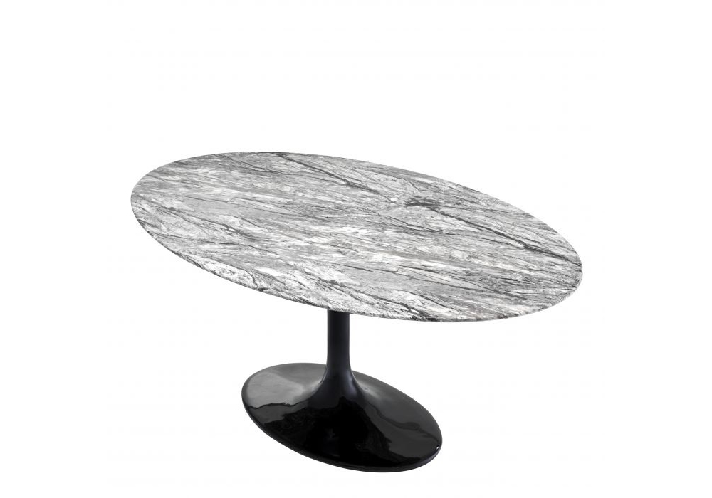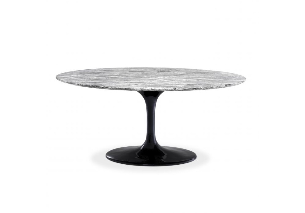 Dining Table Solo diseñada por Eichholtz es una mesa con una tapa de mármol falso con un borde de latón cepillado. Disponible en diferentes acabados.