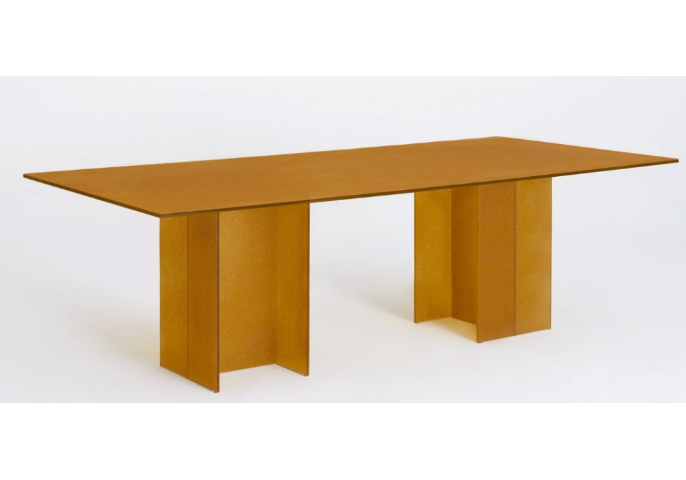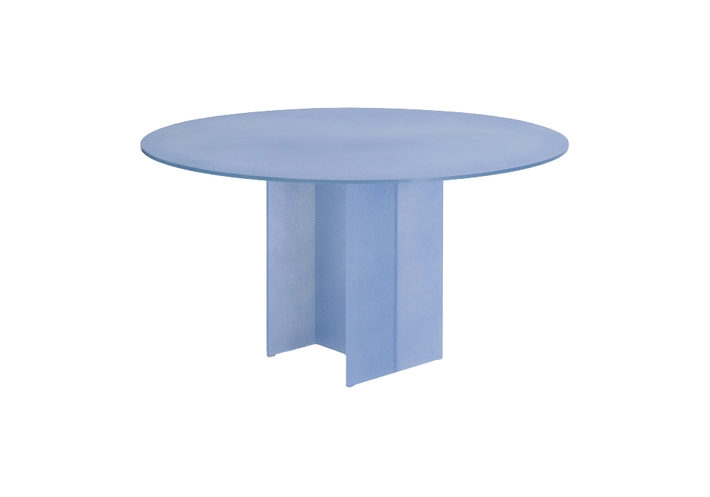 Simoon diseñada por Patricia Urquiola para Glas Italia es una mesa realizada mediante el encolado de láminas de vidrio extralight de 12 mm al UV. canto pulido rectificado, cuya superficie está recubierta con un granulado especial obtenido a partir de cristal de Murano troceado, disponible en los colores amatista, celeste y topacio.