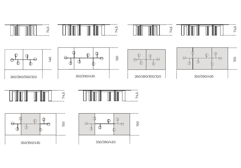 Simpòdio System diseñada por Pinuccio Borgonovo para Gallotti&Radice es una mesa con superficie de vidrio templado de 12 mm de espesor, disponible en extralight, ahumado “grigio Italia” o pintado con exclusivo acabado bronce antiguo y plomo. Bases en hormigón aligerado en color marfil o antracita. Partes metálicas en metal lacado color “fango”.