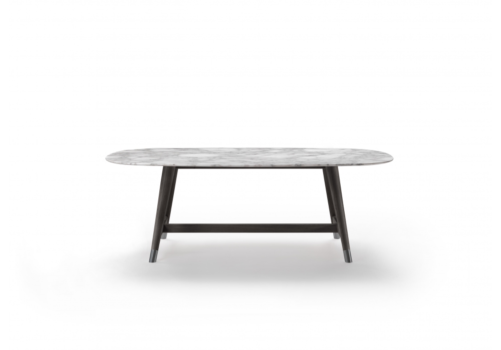 Boma diseñada por Roberto Lazzeroni para Flexform es una mesa con estructura de madera maciza. Tapa de mármol, madera lacada o chapada y pies de aluminio. Está disponible en diferentes medidas y acabados.