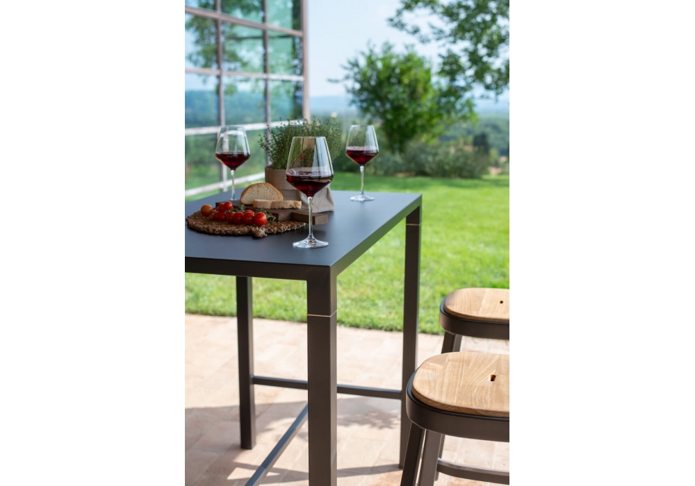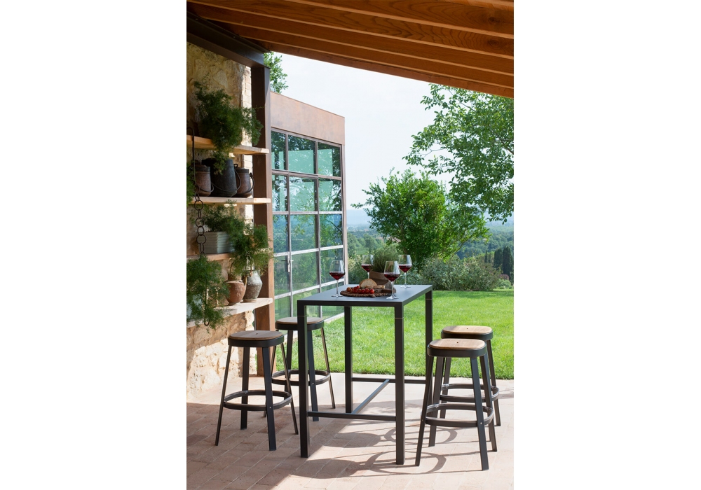 Nova diseñada por EMU es una mesa alta rectangular en acero, gracias a una tecnología particular en los materiales se estabilizan en cualquier tipo de suelo, solucionando el problema de inestabilidad en suelos irregulares. Disponible en diferentes acabados.