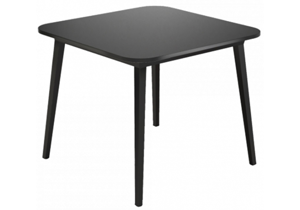 X Table diseñada por Nina Zupanc para Qeeboo es una mesa cuadrangular con tablero de MDF y patas de aluminio. La mesa X está disponible en diferentes tamaños.