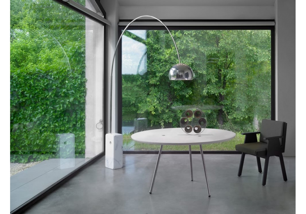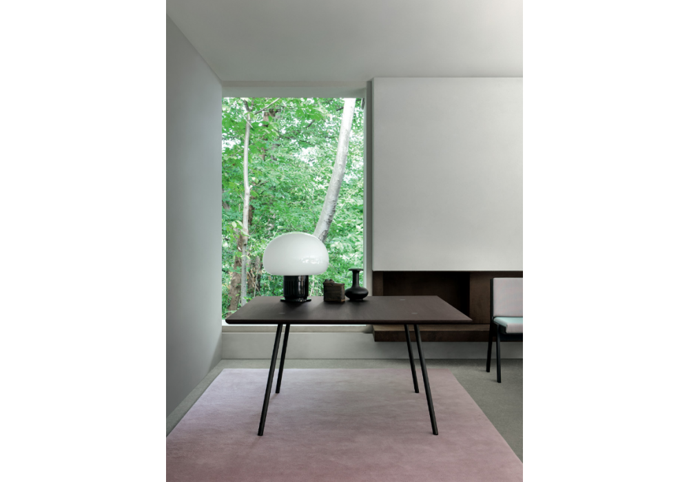 More diseñada por Mangiarotti y rediseñada por Benedini Associati para AgapeCasa es una mesa en diferentes formas disponible en mármol blanco Carrara, mármol gris Carnico, mármol negro Marquina, mármol verde Alpi, mármol Emperador oscuro o en madera contrachapada con acabado de roble natural o marrón. oscuro. Las patas, en acero inoxidable, están disponibles con acabado cepillado o bruñido cepillado.
