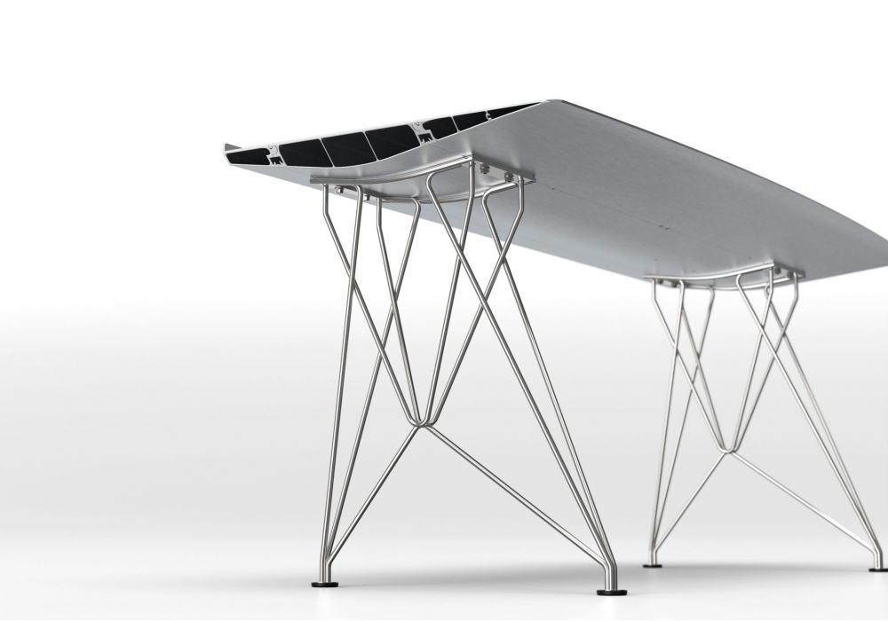 Table B Silver Desk diseñada por Konstantin Grcic para BD Barcelona es una mesa con tablero en aluminio extrusionado con canto redondeado y patas en roble natural revestido con barniz transparente al agua. Disponible en diferentes tamaños.