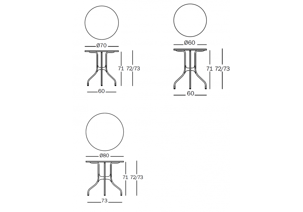 | Diámetro de la superficie | Ø 60 cm; Ø 70 cm; Ø 80 cm. |