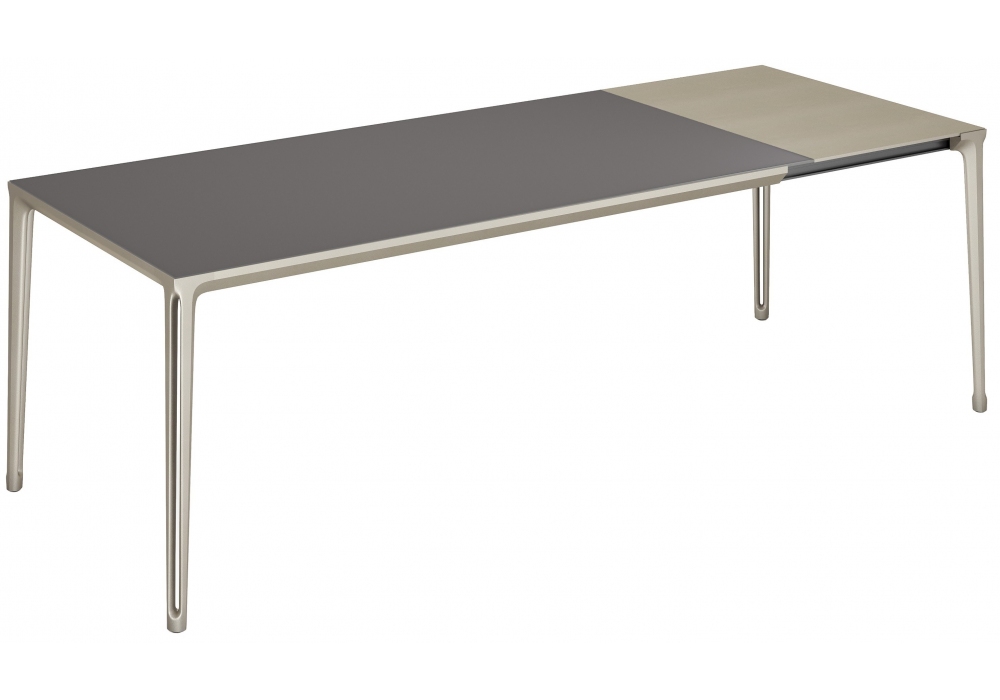 Boulevard Drive diseñada por Archirivolto para Cattelan Italia es una mesa extensible con tablero en vidrio extraclaro satinado templado pintado y estructura en aluminio lacado gofrado. Extensión de madera laminada a juego con la estructura. Disponible en varias dimensiones.