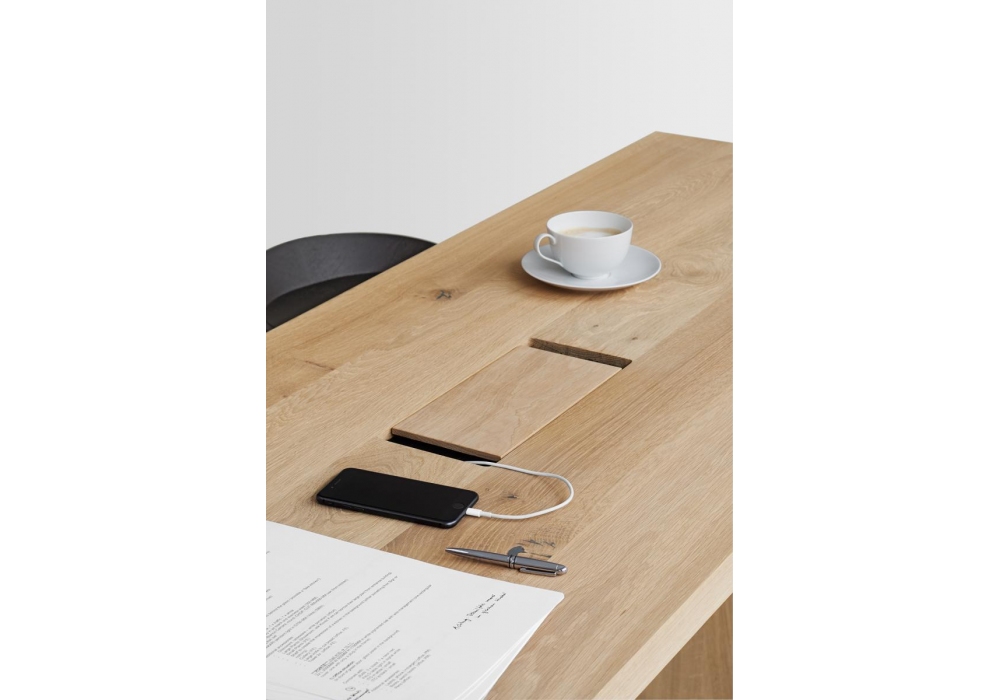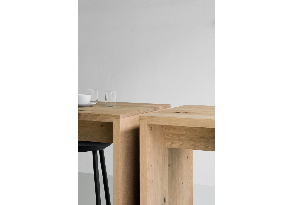 TA01 Ponte diseñada por Philipp Mainzer es una mesa alta realizada en roble o nogal que destaca por su forma arquetípica y es especialmente adecuada como mesa de trabajo o de conferencias. Disponible en varios tamaños.