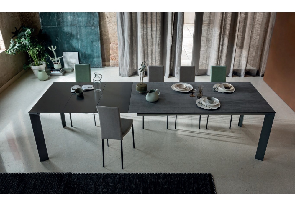 Manhattan diseñada por Riflessi es una mesa extensible realizada con estructura y patas en aluminio lacado o pintado, tapa en cristal templado extraclaro retropintado mate o en cerámica. Extensiones en madera lacada en blanco mate en combinación con cerámica blanca - extensiones en lacado antracita mate con todas las demás cerámicas. Disponible en diferentes acabados y dimensiones.