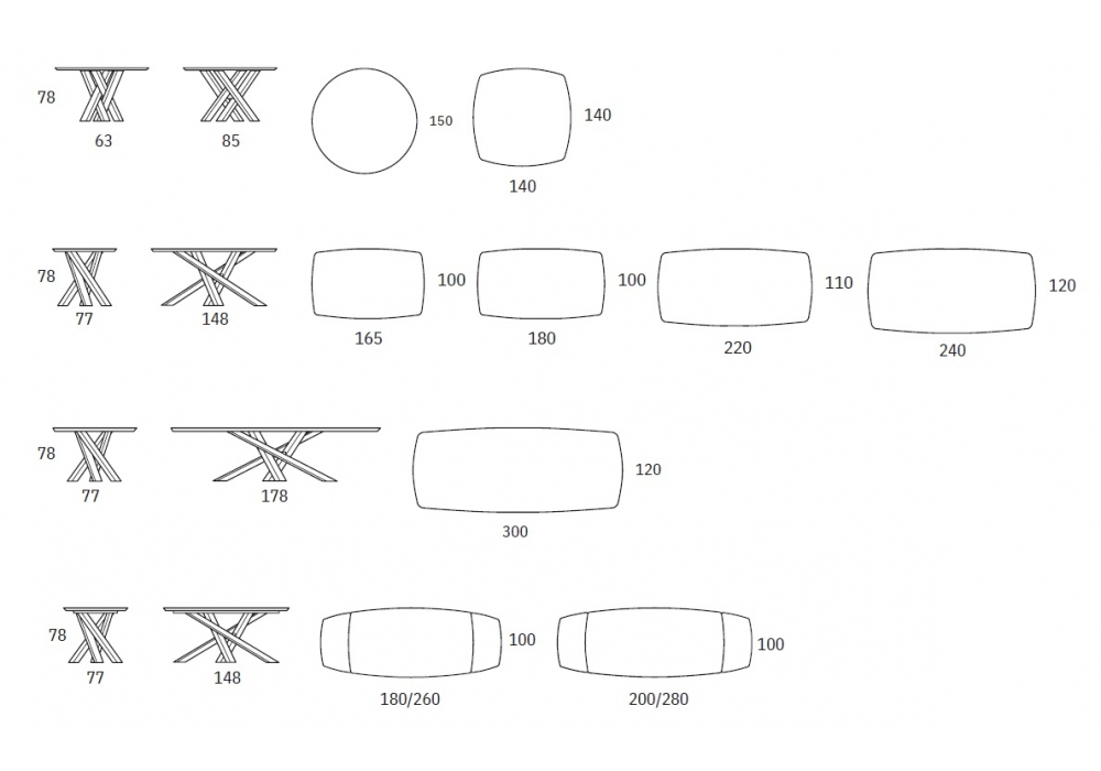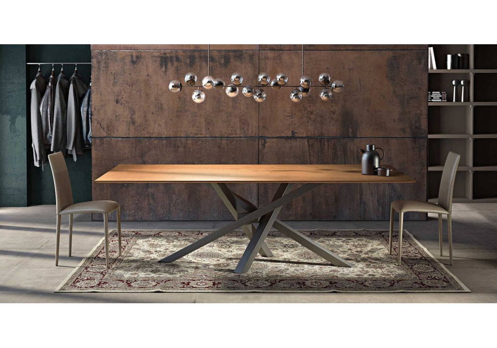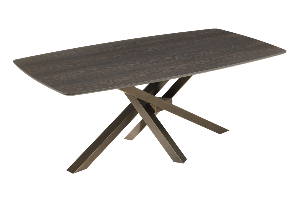 Shangai diseñada por Riflessi es una mesa con tapa en madera de nogal canaletto o roble biselado. Base de aluminio revestido de acero inoxidable espejo, pintado, revestido de gres Rivergrey o ArabiK, o revestido de nogal Canaletto o roble. Disponible en diferentes dimensiones.