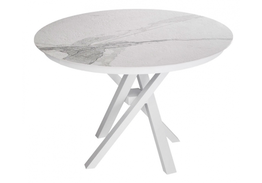 Round diseñada por Riflessi es una mesa con base en aluminio pintado y sobre en cristal templado retrolacado blanco o cerámico. Disponible en diferentes dimensiones. Extensión interior en madera lacada blanco mate en combinación con cristal blanco y cerámica blanca, extensiones lacado antracita mate con el resto de cerámicas.