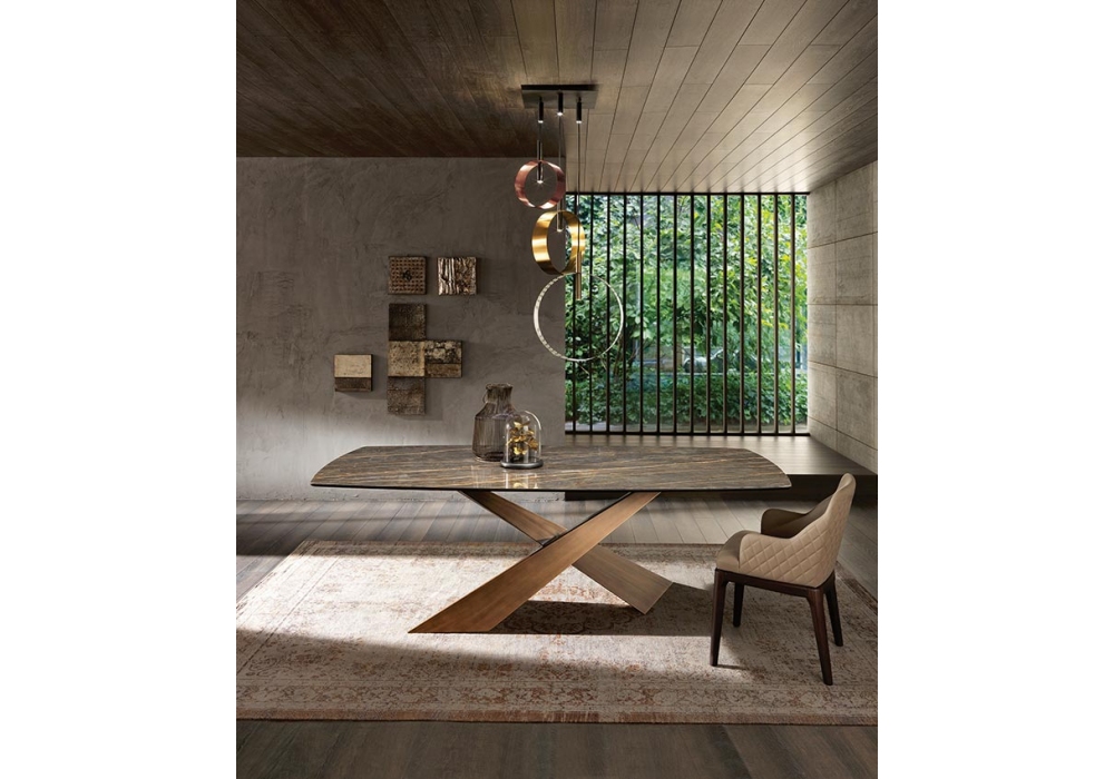 Living diseñada por Riflessi es una mesa con base de metal pintado y piano de cerámica. Disponible en diferentes acabados y dimensiones.