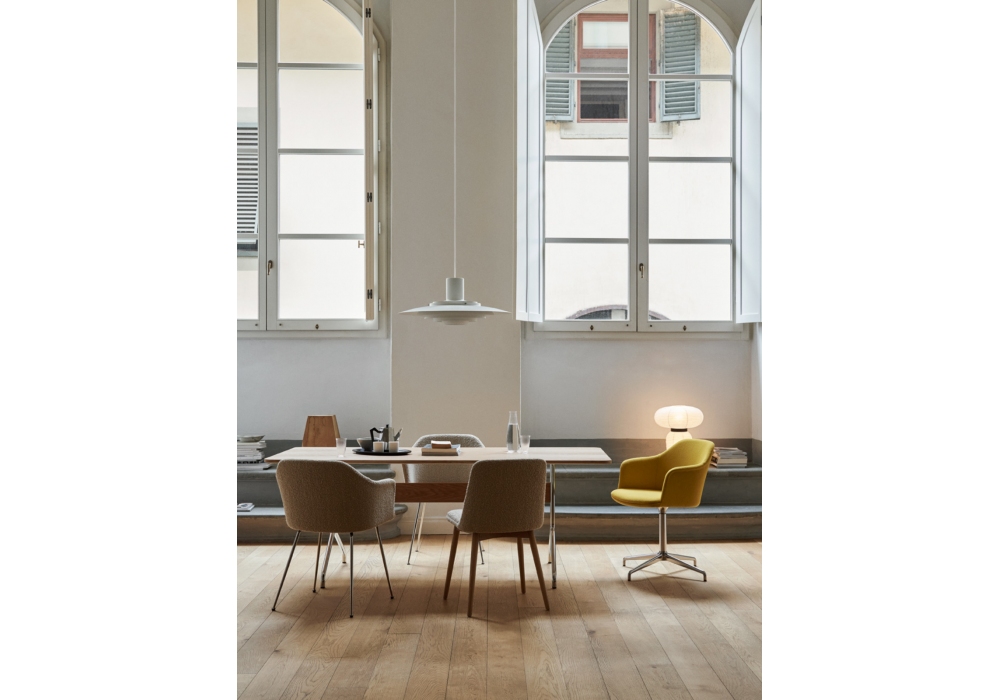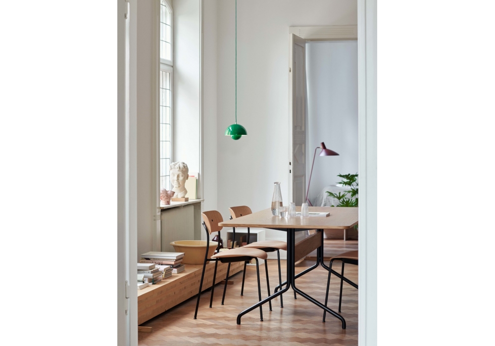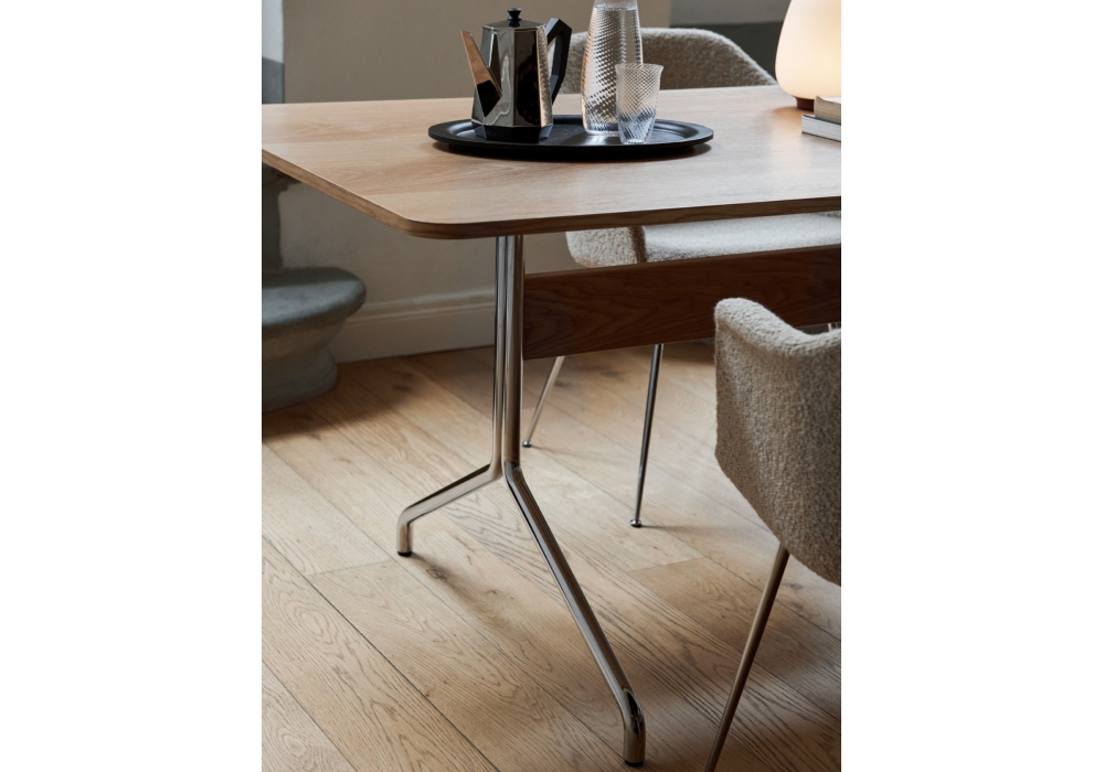 Pavilion diseñada por Anderssen & Voll para &Tradition es una mesa con tablero en MDF chapado lacado y patas en tubo de acero doblado.
