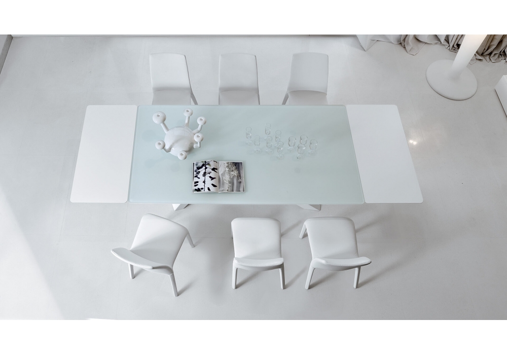 Big Table diseñada por Alain Gilles para Bonaldo es una mesa extensible con base de metal pintado en diferentes acabados. La parte superior y las extensiones están en varios materiales y colores a juego. Disponible en 3 tamaños.
