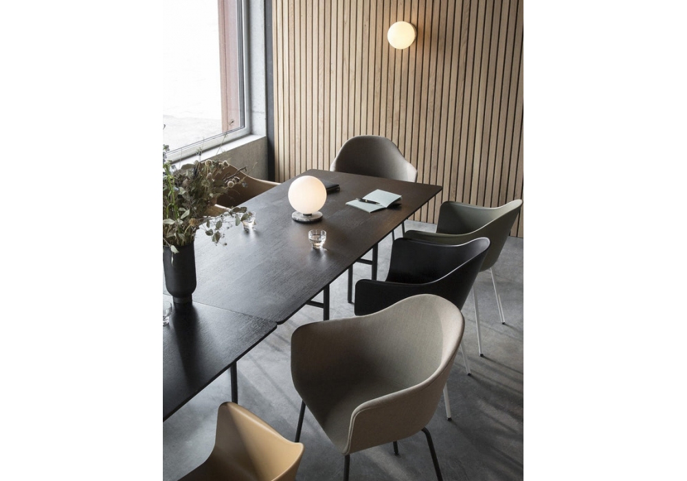 Snaregade diseñada por Norm Architects para Audo Copenhagen es una mesa rectangular con tablero en roble o linóleo, patas en acero. Disponible en diferentes acabados.