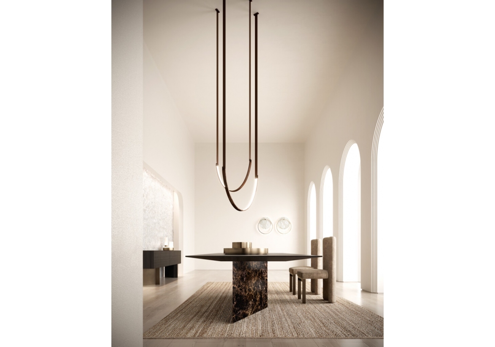 Assolo diseñada por Elena Pancaldi para Emmemobili es una mesa en tres tamaños diferentes realizada en madera contrachapada contrachapada, tablero en roble natural, lacado o en mármol. La pata en forma de rombo de madera contrachapada se puede enchapar o recubrir con diferentes materiales. Disponible en diferentes acabados.