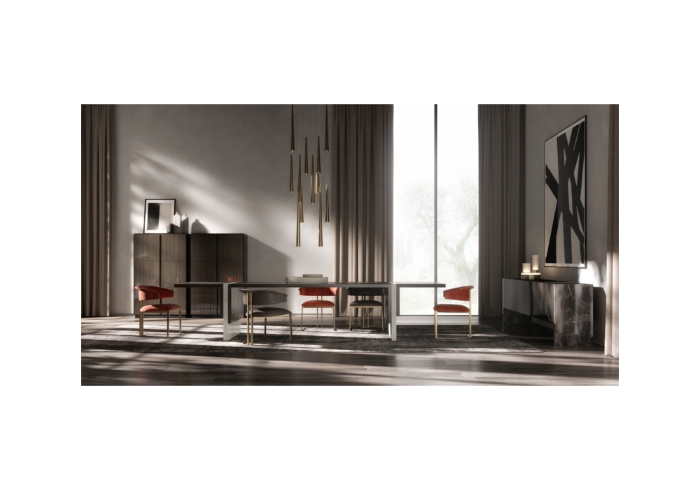 Cosmo diseñada por Elena Pancaldi para Emmemobili es una mesa realizada en madera contrachapada o combinada con placas de mármol. Disponible en tres tamaños y en diferentes acabados.