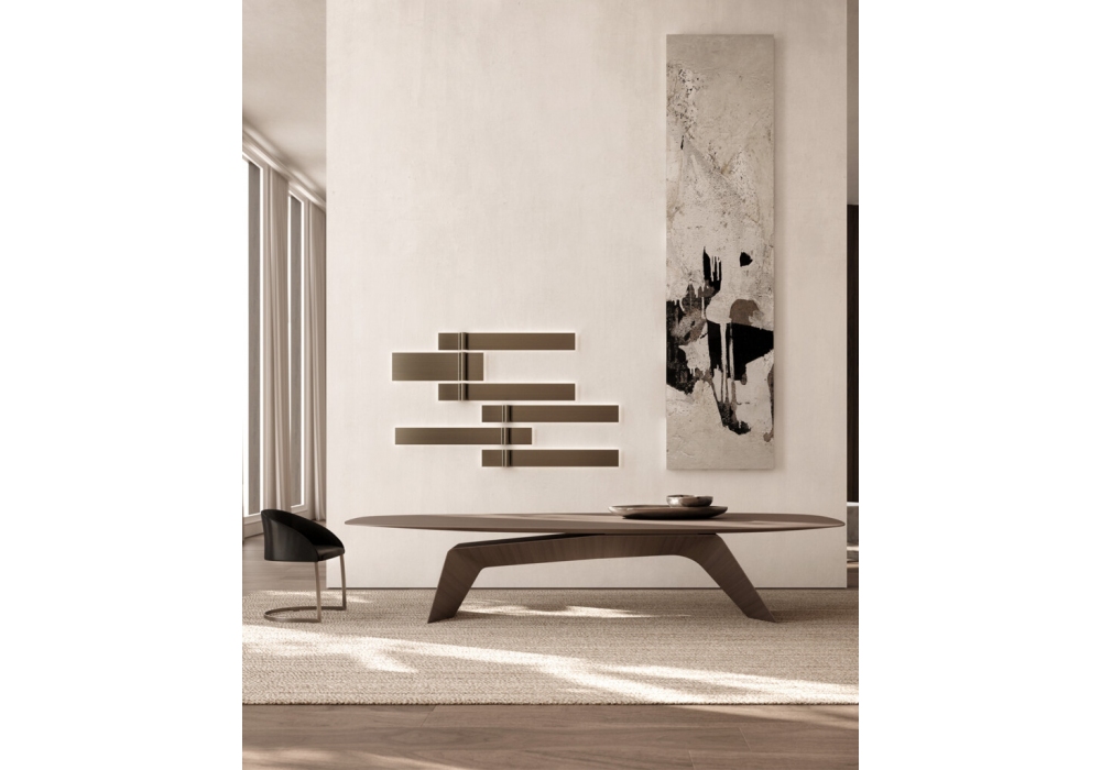 Kintai diseñada por Ferruccio Laviani para Emmemobili es una mesa con tablero en contrachapado contrachapado y parte inferior lacada, la pata está realizada en un solo bloque de contrachapado contrachapado en forma. Disponible en varios tamaños y en diferentes acabados.