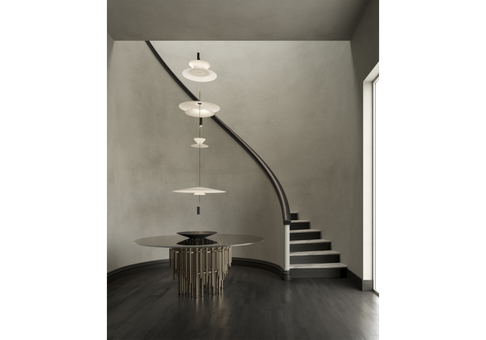 Tuileries diseñada por Ferruccio Laviani para Emmemobili es una mesa caracterizada por elementos verticales de diferentes tamaños y longitudes. Base de latón y tapa de cristal (grosor mm. 15). Disponible en diferentes tamaños.