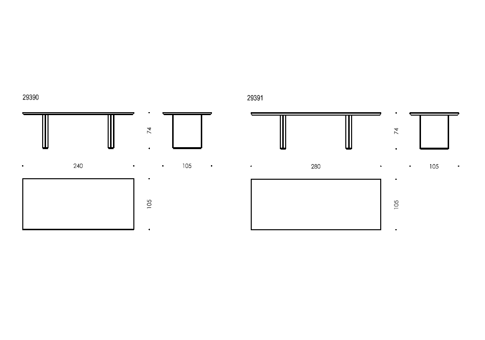 | Dimensiones | - 240 x 105 x H 74 cm; - 280 x 105 x H 74 cm. |