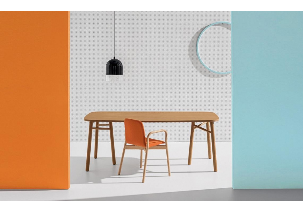 Sakti diseñada por Marialaura Rossiello Irvine y Maddalena Casadei para Discipline es una mesa con patas de fresno natural. Sobre en cristal extraclaro transparente templado o en contrachapado de abedul chapado en roble o laminado blanco o negro.