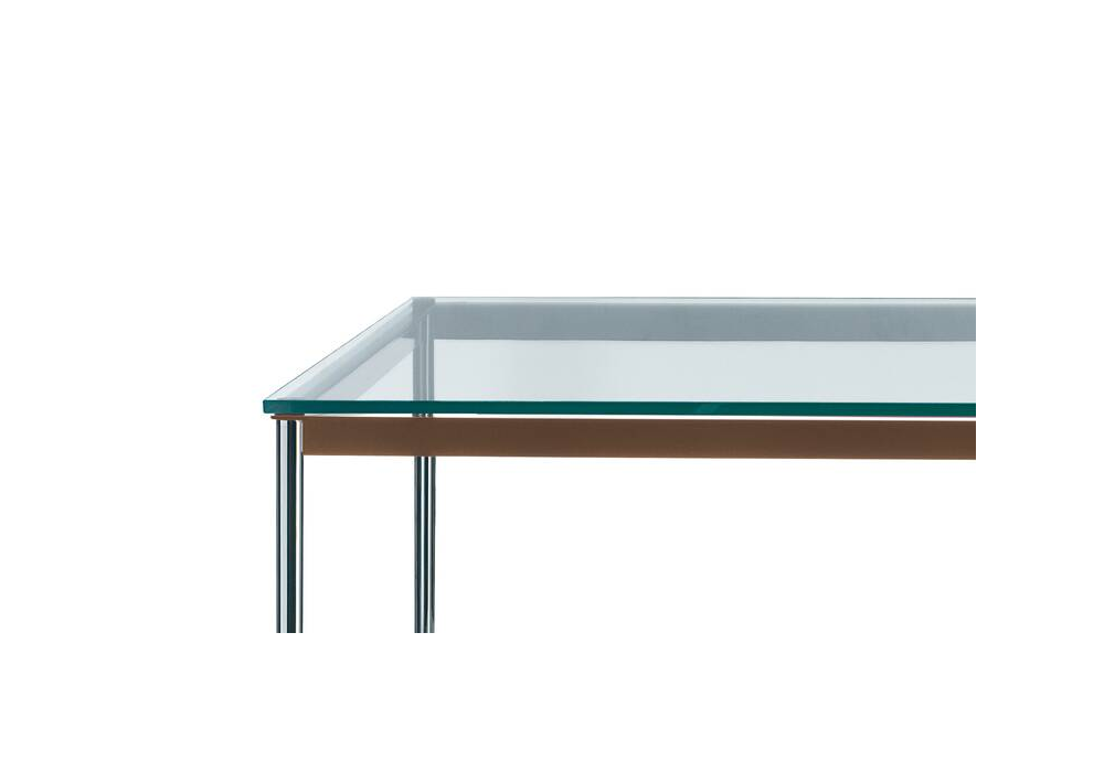 10 Table en Tube diseñada por Le Corbusier, Pierre Jeanneret, Charlotte Perriand para Cassina es una mesa cuadrada con tapa de cristal, vidrio moldeado o coloreado y patas cromadas, con estructura pintada. Disponible en diferentes acabados.