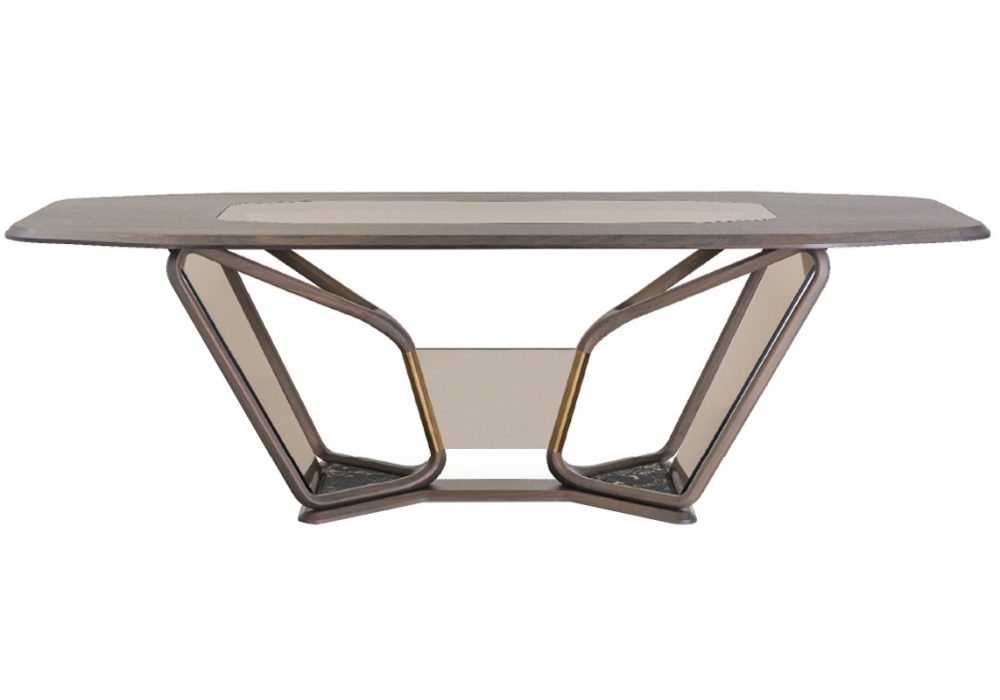 Vine diseñada por Frank Jiang para Turri es una mesa con estructura en MDF, madera contrachapada, madera maciza y paneles de partículas enchapados en nogal con vidrios bronceados injertados en la estructura portante. La parte superior es de nogal chapado con inserto de cristal bronceado. Base realizada con elementos de mármol engastados. Disponible con o sin inserto de vidrio bronceado en la parte superior.